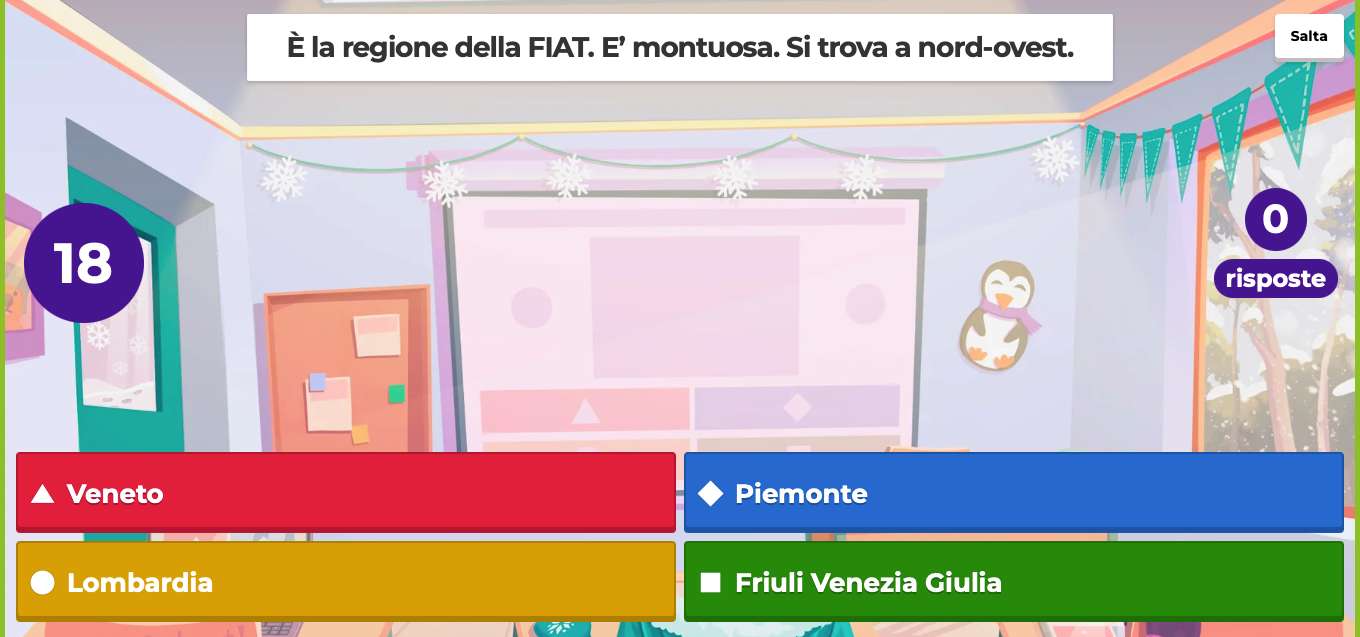 最初のパートでは、イタリア語の教育に最適な番組のクイズが選択され、その後、クイズの視聴と回答の分析が行われます。2番目のパートでは、レッスン自体がテレビクイズに変わります。生徒たちは参加者となります!